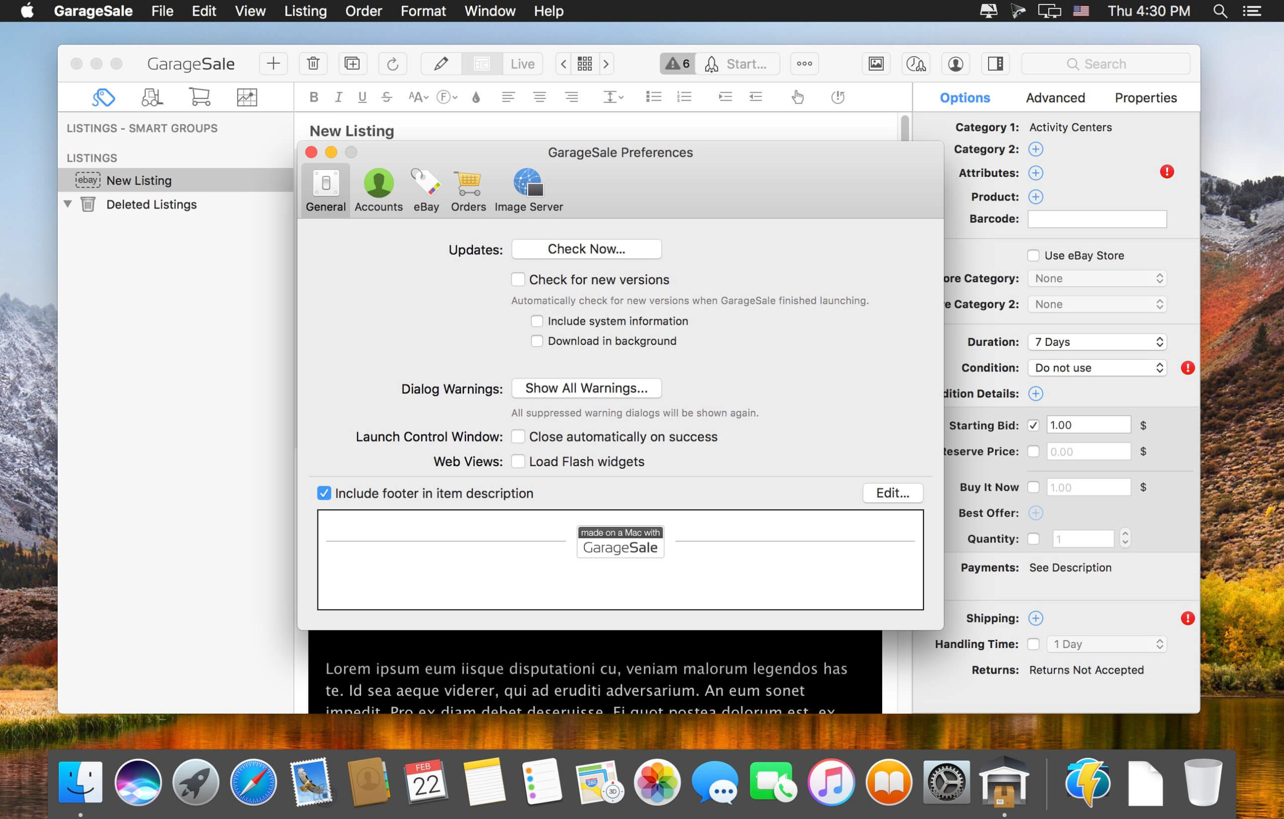 You should choose this application because it turns the complicated task of selling on eBay into a smooth and straightforward process. It offers fantastic features like customizable templates that make your listings look professional and stand out from the crowd. You can easily drag and drop photos, write descriptions with a built in text editor, and manage multiple listings at the same time. It also helps you schedule your listings to go live at the best possible time for buyers. Choosing the GarageSale 9.9.4 Mac download means you get a reliable assistant that saves you hours of work, helps you create better looking listings, and ultimately helps you sell your items more effectively.